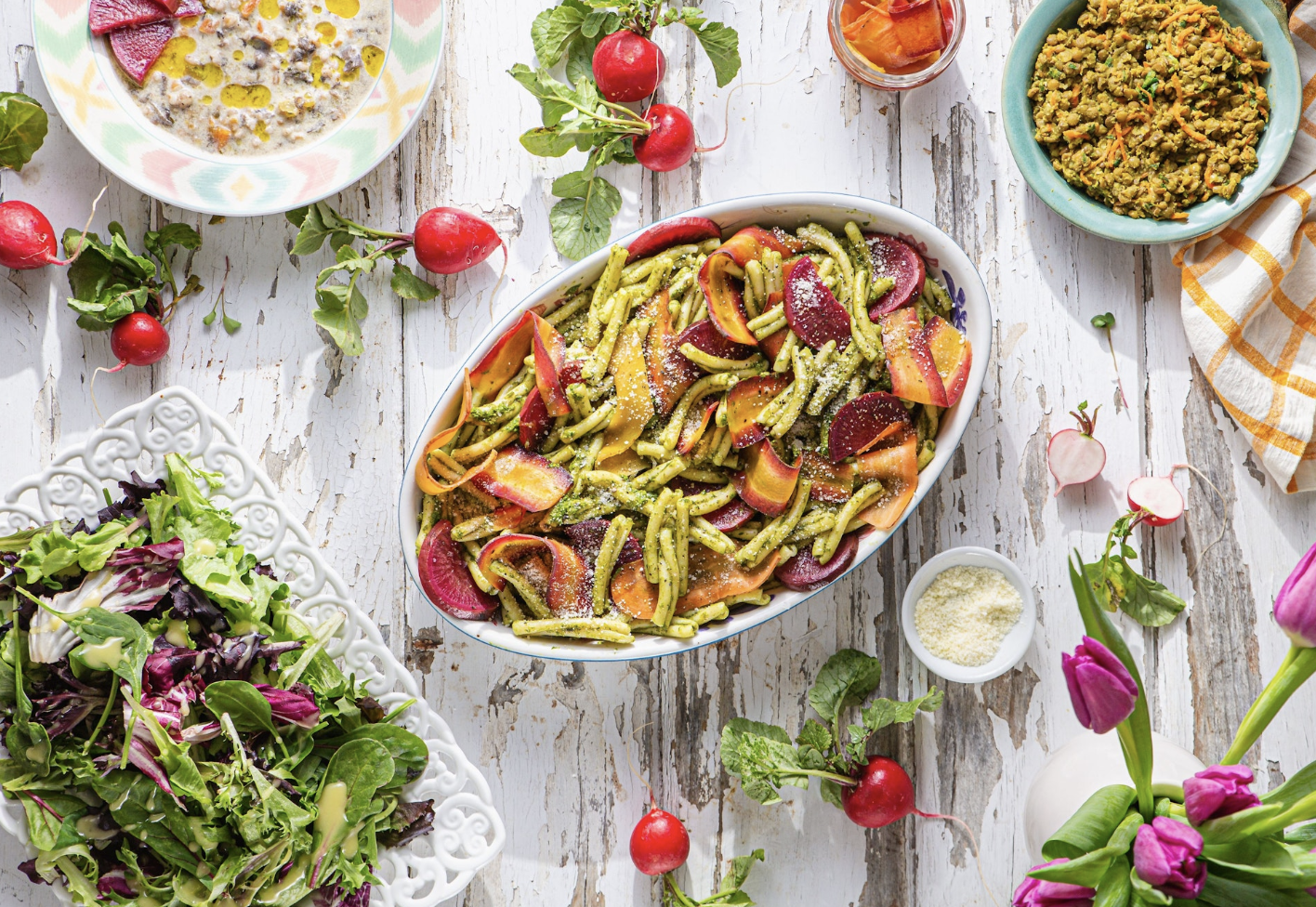 If you’re looking to welcome spring in your kitchen, but your recipe mindset still feels stuck in winter, take a peek at our Early Spring Box, which has 3 luxurious, easy-to-assemble meals and 2 desserts, all featuring actually-local produce like radishes, carrots, spring-dug parsnips, new potatoes, and spring onions. 🌼 It’s like a garden in your refrigerator! Choose Large (makes 4 servings of each item) or Small (makes 2 servings of each item). What’s inside each box?
